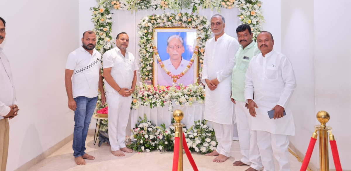 మాజీ మంత్రి హరీశ్ రావు తండ్రి సత్యనారాయణ రావు ఇటీవల మృతి చెందారు. విషయం తెలుసుకున్న రాష్ట్ర మాజీ మిషన్ భగీరథ వైస్ చైర్మన్, మాజీ జెడ్పిటిసి, ఉప్పల ట్రస్ట్ చైర్మన్ ఉప్పల వెంకటేష్ సోమవారం హైదరాబాద్ లోని వారి స్వగృహానికి వెళ్లి సత్య నారాయణ రావు చిత్రపటానికి పూలమాలలు వేసి, నివాళులర్పించారు. హరీశ్ రావుతోపాటు వారి కుటుంబ సభ్యులను పరామర్శించి, ఓదార్చారు. ఈ కార్యక్రమంలోని మండల మాజీ సర్పంచుల సంఘం అధ్యక్షులు గోపాల్ నాయక్, జేఏసీ ఓయూ కరాటే రాజు నాయక్ తదితరులు పాల్గొన్నారు.