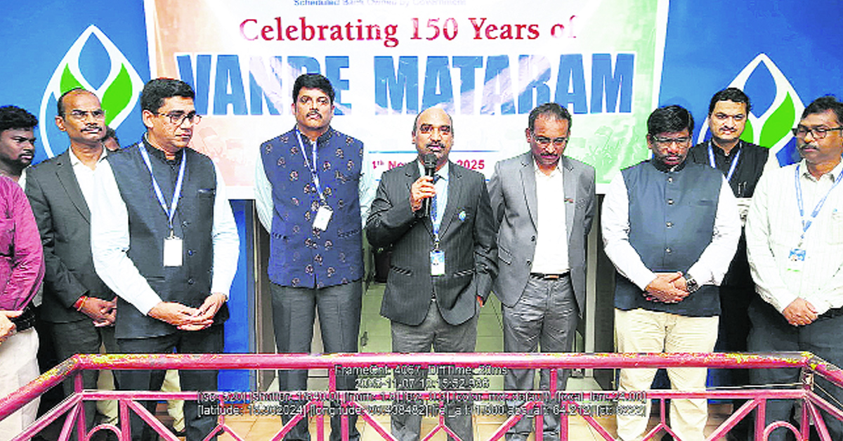 న్యూఢిల్లీ : భారత ప్రభుత్వ, ఆర్థిక సేవల విభాగం (డీఎఫ్ఎస్) నుంచి అందిన మార్గదర్శకాల ప్రకారం.. జాతీయ గీతం వందేమాతరం 150 ఏండ్ల వేడుకల సందర్భంగా ఆంధ్రప్రదేశ్ గ్రామీణ బ్యాంక్ శుక్రవారం వందే మాతరం పూర్తి నిడివి ని సామూహికంగా ఆలపించే కార్యక్రమాన్ని నిర్వహించింది. ఈ కార్యక్రమంలో బ్యాంక్ చైర్మెన్ కె ప్రమోద్ కుమార్ రెడ్డి, ఓఎస్డీలు డి. శంకరరావు, ఎం అరుణ్ కుమార్, విజిలెన్స్ అధికారి హరీస్ బేతా, బ్యాంకు జనరల్ మేనేజర్లు, బ్యాంకు సిబ్బంది అందరూ ఉత్సాహంగా పాల్గొన్నారు.
