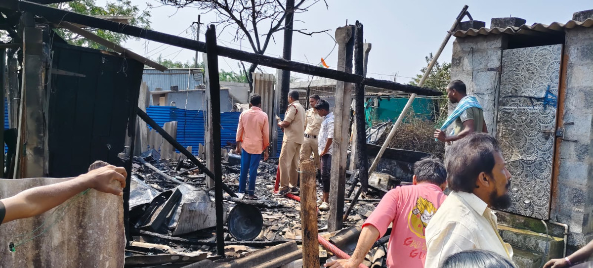 Homeక్రైమ్విద్యుత్ ఘాతంతో పూరిళ్ళు దగ్ధం