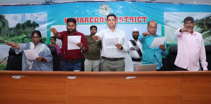 నవతెలంగాణ – కామారెడ్డి : ప్రపంచ నీటి దినోత్సవం సందర్భంగా సోమవారం జిల్లా కలెక్టరేట్ సమావేశ మందిరంలో జిల్లా కలెక్టర్ ఆశిష్ సాంగ్వాన్ ఆధ్వర్యంలో అధికారులు, ఉద్యోగులు కలిసి “నీటి సంరక్షణ ప్రతిజ్ఞ” చేశారు. ఈ కార్యక్రమంలో పాల్గొన్న అధికారులు, సిబ్బంది నీటిని సంరక్షించేందుకు, పొదుపుగా వినియోగించేందుకు కట్టుబడి ఉంటామని ప్రతిజ్ఞ చేశారు. నీటిని వృథా చేయకుండా ఒక్క బొట్టు కూడా వృథా కాకుండా చూసుకోవాలని, తమ కుటుంబ సభ్యులలో కూడా నీటి వినియోగంపై అవగాహన కల్పిస్తామని పేర్కొన్నారు. అలాగే నీటిని అత్యంత విలువైన సహజ వనరుగా భావిస్తూ, సమర్థంగా వినియోగించాల్సిన బాధ్యత తమదేనని తెలిపారు.
