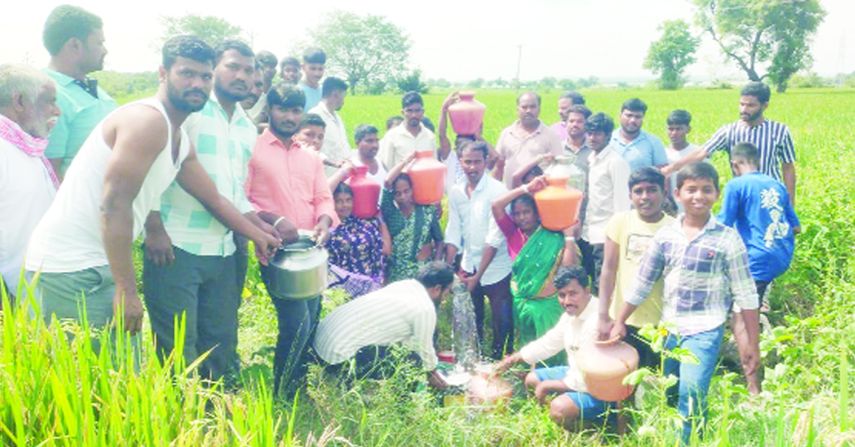 పంట పొలాల నుంచి నీటిని తెచ్చుకున్న గ్రామస్తులు