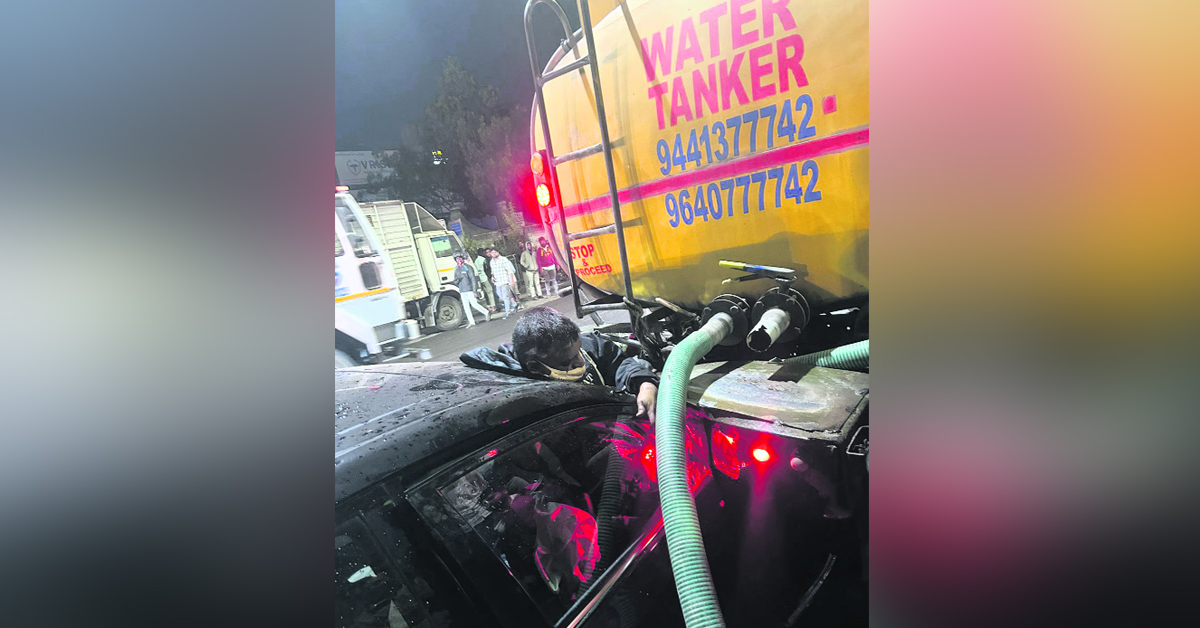 కారు ఢీకొని వాటర్ ట్యాంకర్ డ్రైవర్ మృతి