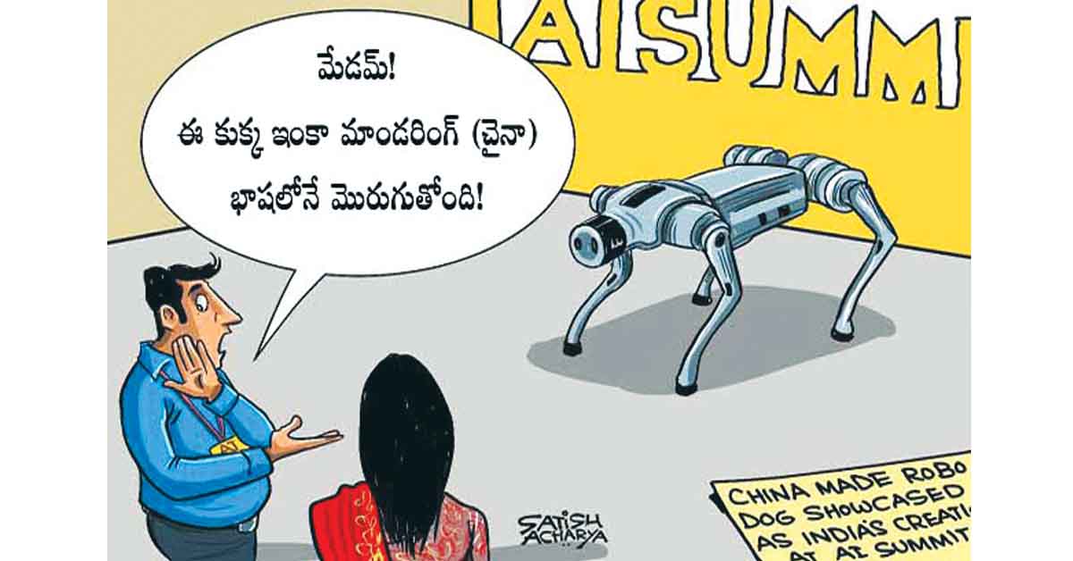 యూనివర్సిటీల్లో ఇతర విద్యాసంస్థల్లో భూతవైద్యం, కర్మకాండల డిప్లమా కోర్సులు ప్రవేశపెట్టి – భగవద్గీత పాఠ్యగ్రంథం చేసుకుంటే, ఇక ఎఐ సమ్మిట్‌లో చైనా రోబోడాగ్‌ను ప్రదర్శించుకోకపోతే మరింకేం ప్రదర్శించుకోగలరూ? ఆత్మల్ని, పరమాత్మల్ని తెచ్చి చూపలేరు కదా? స్వతహాగా ఏదైనా తయారు చేయాలంటే కాస్త సైన్సు తెలిసుండాలి కదా? వేదాలు, మనుస్మృతి ఇక్కడ పనికి రావు కదా? చైనాలో తయారైన రోబోను తెచ్చి, ఎఐ సమ్మిట్‌లో డాబుగా ప్రదర్శించి, అది తామే తయారు చేశామని చెప్పుకున్న గాల్‌గోటియాస్‌ యూనివర్సిటీ రీసర్చ్‌ అండ్‌ ఎనాలిసిస్‌ హెడ్‌ మరెవరో కాదు- సంబిత్‌ పాత్ర! ఈయన ఆవుపేడ కోహినూర్‌ వజ్రం కన్నా గొప్పదని చెప్పిన గొప్ప మేధావి!