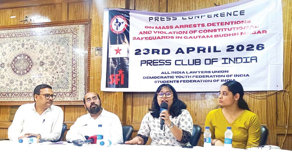 నోయిడా సమ్మె అనంతరం పోలీసుల చర్యలకు గురైన కార్మికులకు అన్ని రకాల న్యాయ సహాయం అందిస్తామని ఆల్ ఇండియా లాయర్స్ యూనియన్ (ఐలు), డీవైఎఫ్ఐ, ఎస్ఎఫ్ఐ నేతలు తెలిపారు. సుమారు వంద మంది కార్మికులు ఇప్పటికీ పోలీసుల అదుపులోనే ఉన్నారని, ఎఫ్ఐఆర్తో సహా పోలీసులు ఎలాంటి సమాచారాన్ని విడుదల చేయలేదని పేర్కొన్నారు. కార్మికుల సమ్మెకు సంబంధించి సుప్రీంకోర్టులో ప్రజా ప్రయోజన వ్యాజ్యం దాఖలు చేసే ఆలోచనలో ఉన్నామని తెలిపారు. గురువారం నాడిక్కడ ఏర్పాటు చేసిన విలేకరుల సమావేశంలో ఐలు నేతలు సునీల్ కుమార్, సుభాష్ చంద్రన్, ఆద్రిజా భద్ర, డీవైఎఫ్ఐ నేతలు రిషి నంది, ఉపాసన గోయల్, ఎస్ఎఫ్ఐ నేత అచింత్య మాట్లాడారు. సమ్మె అనంతరం లాయర్స్ యూనియన్, డీవైఎఫ్ఐ, ఎస్ఎఫ్ఐ ప్రతినిధుల బృందం నోయిడాకు చేరుకుని వాస్తవ నిర్ధారణ నివేదికను సిద్ధం చేసిందన్నారు. వెయ్యి మందికిపైగా పోలీసులు కార్మికులను అదుపులోకి తీసుకున్నారని, వారిలో 300 మందికిపైగా చిన్నారులు ఉన్నారని దర్యాప్తులో వెల్లడైందని తెలిపారు. ”నోయిడాలో జరిగిన పరిణామాలు ఊహకు మించినవి. ప్రభుత్వ చర్య రాజ్యాంగం కల్పించిన అన్ని రక్షణలను ఉల్లంఘించింది. మహిళలు, పిల్లలపై దాడి జరిగింది. అదుపులోకి తీసుకున్న వారికి న్యాయ సహాయం నిరాకరించబడింది. పోలీసులు కనీసం యూనిఫాం కూడా లేకుండా చర్యలు చేపట్టారు. అదుపులోకి తీసుకున్న వారిని కోర్టు ముందు హాజరుపరచడానికి పోలీసులు సిద్ధంగా లేరు” అని వారన్నారు.