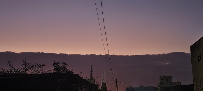నవతెలంగాణ – ఊరుకొండ : నాగర్ కర్నూల్ జిల్లా ఊరుకొండ మండల కేంద్రంలో శనివారం ఆకాశంలో పడమర వైపు నల్లగా గోడ కట్టినట్లు ఏర్పడడంతో.. ఆకాశం ఎందులో నల్లబడ్డది అని పలువురు పలు రకాలుగా చర్చించుకుంటున్నారు. తూర్పు వైపు ఎర్రని తెరల మారడం మండల ప్రజలు ఆశ్చర్యానికి గురి కావడమే కాకుండా తీవ్ర భయభ్రాంతులకు గురవుతున్నారు. మళ్లీ మొంతా తుఫాన్ ముంచుకొస్తుందో.. లేక వాతావరణంలో వింత మార్పులు ఏమైనా చోటు చేసుకుంటాయేమోనని పలువురు పలు రకాలుగా చర్చించుకుంటున్నారు.