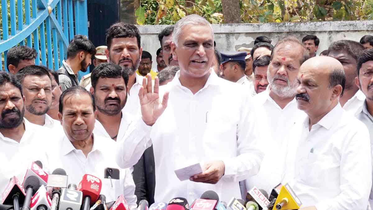 చట్ట విరుద్ధంగా పనిచేస్తున్న ఐపీఎస్ ఆఫీసర్లను.. రేపు రిటైర్డ్ అయినాసరే వదిలిపెట్టే ప్రసక్తే లేదని, విచారణ జరిపిస్తామని హెచ్చరించారు. ”మీ పార్టీ కార్యాలయం వేదికగా జరిగే అవినీతి, అక్రమాల వ్యవహారాలన్నీ రికార్డు అవుతున్నాయి.. రేవంత్రెడ్డికి మాటలు ఎక్కువ.. చేతలు తక్కువ.. నీ పాలనలో సగం కాలం పూర్తయింది.. మిగిలిన సగం కాలమైనా ప్రజలకు ఏదైనా మేలు చేసే ప్రయత్నం చేయండి” అని సూచించారు. రైతులు కొనుగోలు కేంద్రాల్లో పడిగాపులు కాస్తుంటే రేవంత్రెడ్డి వంద కోట్లతో ప్యాలెస్ కట్టుకోవడంలో బిజీగా ఉన్నారని విమర్శించారు. సన్న వడ్లకు బోనస్ ఇస్తారో లేదో సీఎం తేల్చాలన్నారు. ఐదారు కిలోల తరుగు తీస్తున్నా ప్రభుత్వం ఎందుకు పట్టించుకోవడం లేదని ప్రశ్నించారు. ఎకరాకు 26 క్వింటాళ్లు మాత్రమే కొంటామని మక్కలకు కొత్త షరతులు పెట్టి రైతులను ఇబ్బంది పెడుతున్నారని అన్నారు. 13 లక్షల ఎకరాల్లో పంట వేస్తే కనీసం సగం కూడా కొనలేని దుస్థితిలో ప్రభుత్వం ఉందన్నారు. ఎండలో రైతులు మాడిపోతుంటే పట్టించుకునే నాధుడే లేడని, రైతుల కష్టాలు పట్టవా? అని ప్రశ్నించారు. హరీశ్రావు వెంట సంగారెడ్డి ఎమ్మెల్యే చింతా ప్రభాకర్, జహీరాబాద్ ఎమ్మెల్యే మాణిక్రావు, ఎర్రోళ్ల శ్రీనివాస్, బీఆర్ఎస్ నాయకులు తదితరులు ఉన్నారు.
