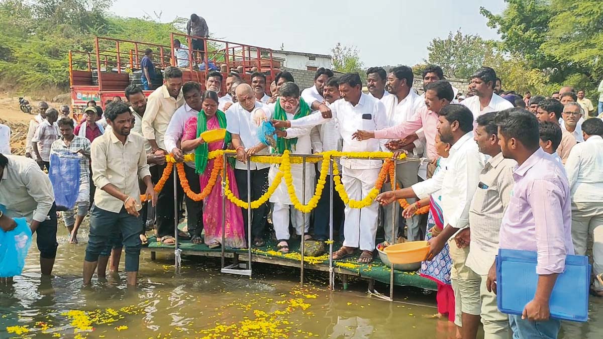 మత్స్యకారుల అభివృద్ధికి ప్రభుత్వం కృషి చేస్తోందని బీసీ సంక్షేమ, రవాణా శాఖ మంత్రి పొన్నం ప్రభాకర్ అన్నారు. సిద్దిపేట జిల్లా కోహెడ మండలంలోని శనిగరం చెరువులో బుధవారం మత్స్య అభివృద్ధి, స్టేట్ సెక్టార్ పథకంలో భాగంగా వంద శాతం రాయితీపై రొయ్య పిల్లలను విడుదల చేశారు. ఈ సందర్భంగా మంత్రి మాట్లాడుతూ.. మత్స్య సంపద ప్రకృతి ద్వారా లభించే విలువైన సంపద అని, చేపలు ఆరోగ్యానికి ఎంతో మేలు చేస్తాయని అన్నారు. నియోజకవర్గంలోని 166 చెరువులకుగాను 38 లక్షల 92 వేల చేప పిల్లలు విడుదల చేయాలని ప్రణాళికలు రూపొందించగా, ఇప్పటి వరకు 26 చెరువుల్లో 26 లక్షల 69 వేల 860 చేప పిల్లలను విడుదల చేసినట్టు తెలిపారు. ఇందుకు రూ.46.08 లక్షలు అయిందన్నారు. శనిగరం రిజర్వాయర్లో 9.87 లక్షల చేప పిల్లలను విడుదల చేయగా ప్రభుత్వం రూ.17.04 లక్షలు ఖర్చు చేసిందన్నారు. రాజీవ్ రహదారి ప్రధాన రోడ్డుపై ఫిష్ మార్కెట్ ఏర్పాటు చేయడానికి ప్రతిపాదనలు సిద్ధమయ్యాయని, స్థల సేకరణ పూర్తయ్యాక మార్కెట్ ఏర్పాటు చేస్తామని తెలిపారు. కరీంనగర్, గోదావరిఖని తదితర ప్రాంతాల ప్రజలు హైదరాబాద్ వెళ్లే సమయంలో ఇక్కడ చేపలు కొనుగోలు చేసే అవకాశం ఉంటుందని అన్నారు. మత్స్య సంపదతో ముదిరాజ్, గంగపుత్రులకు ఉపాధి కల్పించేందుకు ప్రభుత్వం చర్యలు తీసుకుంటోందన్నారు. అందరికీ భోగి, సంక్రాంతి పండుగ శుభాకాంక్షలు తెలిపారు. ఈ కార్యక్రమంలో జిల్లా గ్రంథాలయ సంస్థ చైర్మెన్ కేడం లింగమూర్తి, ఏఎంసీ చైర్మెన్ నిర్మల జయరాజ్, శనిగరం సర్పంచ్ లింగంపల్లి లక్ష్మీనారాయణ, మత్స్య సహకార సంఘాల నాయకులు, అధికారులు, ప్రజాప్రతినిధులు పాల్గొన్నారు.