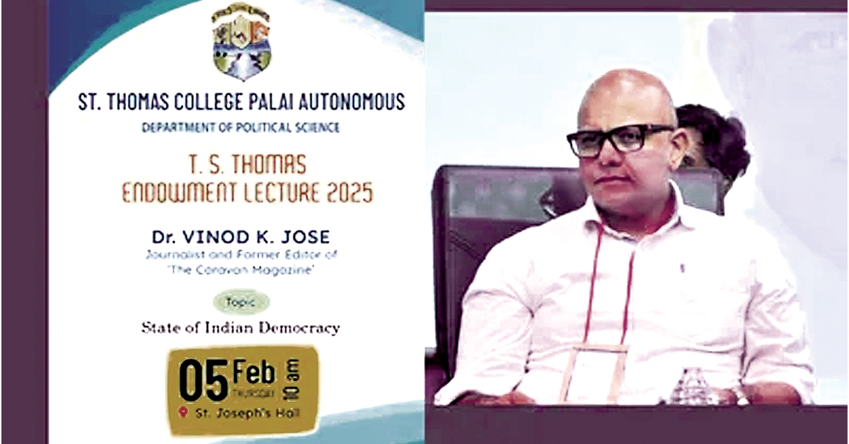 తిరువనంతపురం : కేంద్రంలోని మోడీ పాలనలో భారత ప్రజాస్వామ్య స్థితిగతులపై మాట్లాడాలంటే సాహసం చేయాల్సిన పరిస్థితులు దేశంలో ఏర్ప డ్డాయి. కేంద్రాన్ని ప్రశ్నించినా, ప్రజా స్వామ్యం ఎదుర్కొంటున్న సమస్యలను లేవనెత్తినా.. అలాంటి వారికి ఎలాంటి వేదికా దొరకదు. కేరళలోని ఓ ఘటనే ఈ విషయాన్ని వెల్లడిస్తున్నది. భారత ప్రజాస్వామ్య స్థితిగతులపై మాట్లాడా లంటూ ఓ సీనియర్ జర్నలిస్టును ఆహ్వానించిన ప్రముఖ విద్యా సంస్థ సెయింట్ థామస్ కాలేజీ.. ఆ తర్వాత ఆయనను ‘వివాదాస్పద వ్యక్తి’ పేర్కొంటూ ఆ ఆహ్వానాన్ని ఉపసంహరించుకుంది. ఈ ఘటన స్వయంగా భారత ప్రజాస్వామ్య పరిస్థితిని ప్రతిబింబిస్తోందని విమర్శలు వెల్లువెత్తుతున్నాయి. వివరాళ్లోకెళ్తే.. కేరళ లోని పాలాలో గల ప్రతిష్టాత్మక సెయింట్.థామస్ కాలేజీ నిర్వహించే టి.సి.థామస్ ఎండోమెంట్ మెమోరియల్ లెక్చర్కు క్యారవాన్ మాజీ సంపాదకుడు, వాయనాడ్ లిటరేచర్ ఫెస్టివల్ వ్యవస్థాపకులు వినోద్ కె.జోస్ను ఆహ్వానించారు. ‘భారత ప్రజాస్వామ్య స్థితి’ అనే అంశంపై ఆయన మాట్లాడాల్సి ఉన్నది. కానీ కార్యక్రమానికి రెండ్రోజుల ముందు.. ఆయనను ‘వివాదాస్పద వ్యక్తి’గా పేర్కొంటూ కాలేజీ యాజమాన్యం ఆయన ఉపన్యాసాన్ని రద్దు చేసింది.